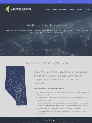 Informational website about the Alberta SuperNet, helping to dispel some of the myths that surround it and how it affects all Albertans.